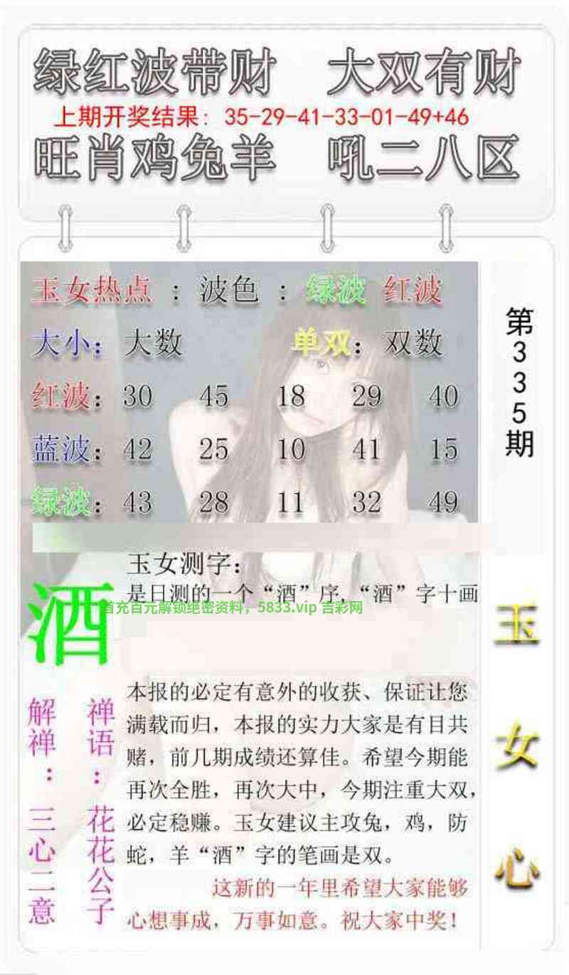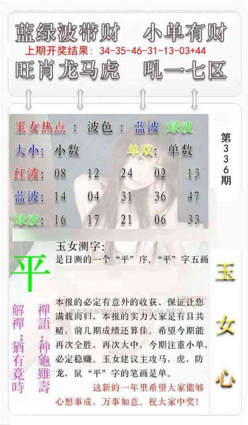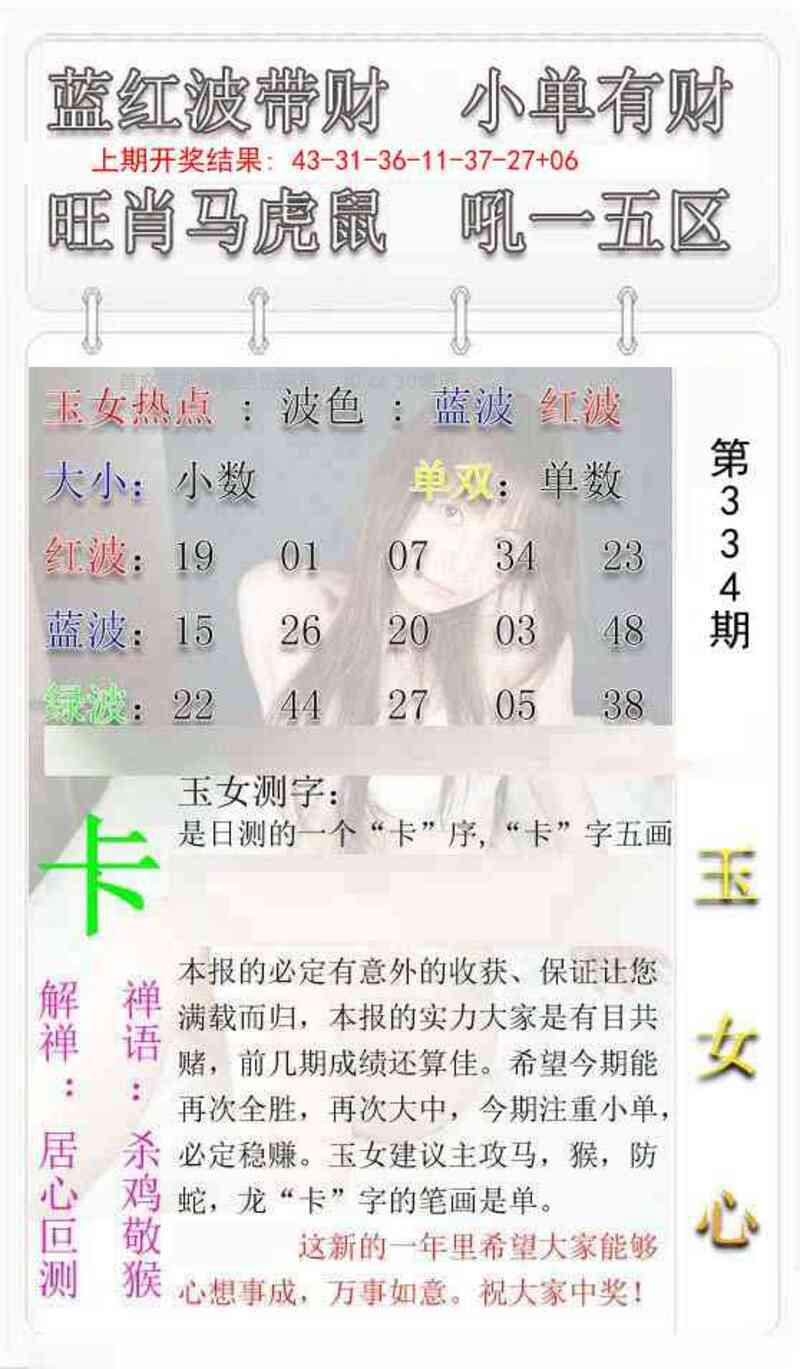 331期澳门彩票中心开龙26 波色:蓝波绿波 头数:123头 尾数:2346015尾 生肖:猴鸡牛龙羊马狗蛇鼠 平特:猴猴猴 主码:22,34,21,33,29,41 防码:26,35,36,32,37,18 |